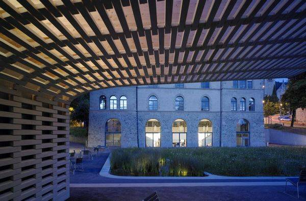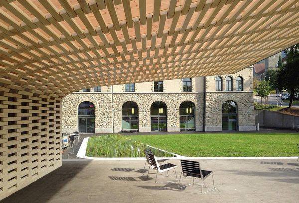 该项目位于楚格市Zugerberg和Kirchenstrasse之间的区域,里面有St. Oswalds教堂和市里的两处地点及州图书馆。业主和土地所有人希望建造一个公共城市花园,这个城市花园应连接至旧城区的人行道路网,同时将图书馆主楼和阅读室连接在一起。特别的挑战是,70年代这个地方被一个大型的公共停车场占用,这一部分是漏在外面的,在伸出的斜坡和车道相交的地区。 在2010年,宣布景观设计大赛冠军,是Planetage landscape、Planwirtschaft、Ramser Schmid三方合力策划。评委会报告称赞他们“设计师在上下层之间巧妙地植入木结构装置,地形边缘的布局令人惊喜而折服,新项目为市民提供了一个新的休憩场所。”建筑师并未将大型地下停车场隐藏起来,建筑师承认这个建筑的存在,决定将它的一部分露在外面,完善其建设,加强嵌板。