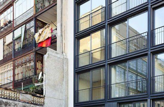 该项目是由Bach Arquitectes设计的。阳台、百叶窗、檐板和颜色这些传统元素在这里被重新诠释,不仅集成了内置的环境,同时采用被动和主动的节能解决方案的方式。 建筑项目是由27个公寓和两个带阁楼的商业空间组成。典型的楼层设有一个和两个卧室的公寓。顶层设有两个公寓有两间卧室和两个一居室公寓,而一楼是由三个复式公寓,每个都有一个花园。地下两层是34个车位的车库空间。街道立面是由固定板之间的连接是由钢骨垂直陶瓷木板,和滑动铝百叶窗提供必要的隐私和照明控制。