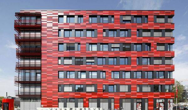 该项目是由NPS Tchoban Voss事务所设计的,位于柏林施普雷河的街区,这里交通便利,有很多的巴士路线,是目前城市中最繁华的地区,具有较高的发展潜力和巨大的声望。这个七层高的建筑的结构,体梁和设计完全融合于当地Osthafen区的周围街区布局。它代表了一个独立的建筑结构的同时,最高标准设计。