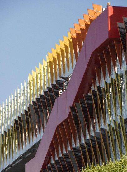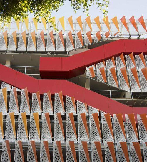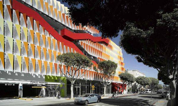 该项目是由Behnisch Architekten和Studio Jantzen设计的,位于圣塔莫尼卡市中心,这个停车场为当地人和游客提供服务,于2013年完工。 第二大街的公共区域为零售商贩、行人、骑自行车的人、开车的人提供了花园和坐下来休息的场所。然而随着这种创新结构的诞生,这种公共的区域不能仅仅停留在首层,而是布满了整座大楼,通过外部的楼梯。这个建筑流通循环的区域面临第二大街,为那些购物却找不到停车场而烦恼的顾客提供了方便。