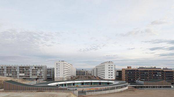 valdespartera生态城位于萨拉戈萨南部边界地区,包括近期建设的1000套住房,满足一定的能源效率标准。临近储水区和环形公路z-40。 根据所有学者的需求,地形海拔近20米的情节,我们很难确定未来儿童的人数,因此建立了一个地域范围和住宅建筑的连续容积接近圆形以及太阳能的总面积为60000平方米的建筑。建筑物的中心也受制于组织的一般标准择优取向的教学领域,教室在山坡上,唯一可能的访问站点在北面的最低点。地形坡度的第一个任务是模型交错水平平台与地面平行,彼此连接,适应边坡以减少土方工程和与个人户外访问、玩耍的关系。