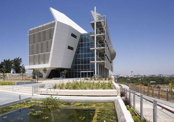 这是由Geotectura, Chen Architects, Axelrod Grobman Architects联合设计的,Porter学院的环境研究教学楼(PSES大楼),是以色列第一个LEED白金认证的建筑,采用先进的环保技术,能源和水的利用效率,它将在特拉维夫大学的校园里第一座绿色建筑。 这座建筑布置了教室、大厅、办公室可用展览的开放式中庭、礼堂设有生态处理系统的湿地花园、绿色屋顶以及自助餐厅。愉快、诱人的室内环境将为学生和研究人员,以及政府官员、业界代表和环保组织成员提供会议场所,参与学校活动。