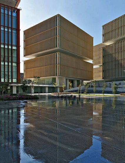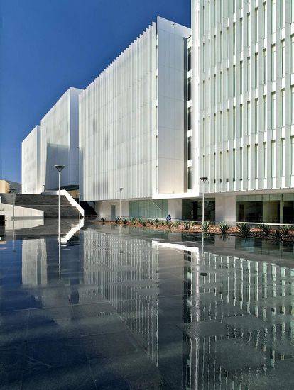 该项目是由TACHER Arquitectos设计的,建筑师们对哈利斯科州联邦司法城提出了动态的组团概念,它是有秩序而又受约束,通过多种景观广场形成各种各样的开放空间,健康可持续的建筑具有优越的视线和朝向。这些广场包容并提升了建筑之间的步行空间质量。元素之间不断对话,而体现在空间中是则流动的、通透的。