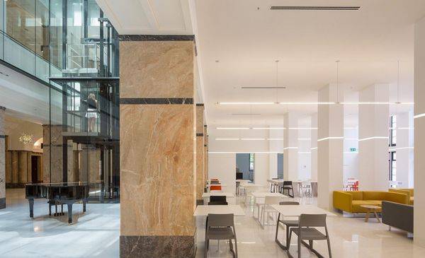 伊拉斯谟大学位于荷兰鹿特丹,现已正式使用。Erick van Egeraat建筑师对该项目进行修复和改造,根据威尼斯宪章的古迹遗址保护的原则。Erick van Egeraat揭示和恢复了该建筑特殊的美,以其大气的装饰,包括天花板、镶板、天然石元素、雕塑和彩色玻璃。几十年来,石膏板墙壁和天花板破损严重。除了修复工程的建筑师加入现代元素,让这一现代教师符合设计概要和现行标准的大学建筑。