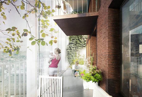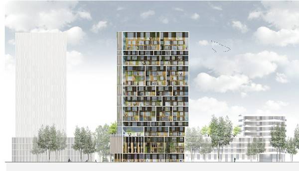 该项目是由C.F Moller Architects和Brut合作设计的,创建一个“垂直社交社区”,该项目的建筑面积为15000平方米,共有24层,包括116个家庭住宅、商店、办公室和集体空间。 公寓范围从学生的小型套房到大的家庭单元,并且每一组类似的公寓开放到阳台空间,创造“垂直小型团体”。通过阳台、玻璃冬季花园、屋顶露台,增加了5000平方米的空间。