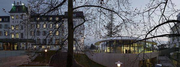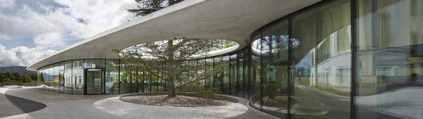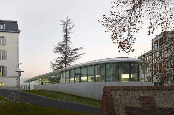 建筑由两个实体组成,一边是餐厅,位于博物馆的上部直接连接到国际红十字会的外部广场,另一侧是包括办公室、会议室和一个临时展览空间的游客空间。 议区域和办公室隐藏在玻璃空间的一侧插入到山边,占用价值不大的一块土地,但也有利于各个不同的空间,同时利于新结构的作用。这两个半地下空间适应Humanitarium组成的三个会议室的可变分区、楼上的博物馆办公室空间的。