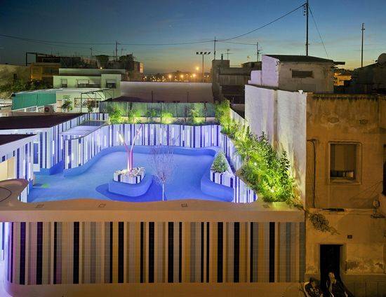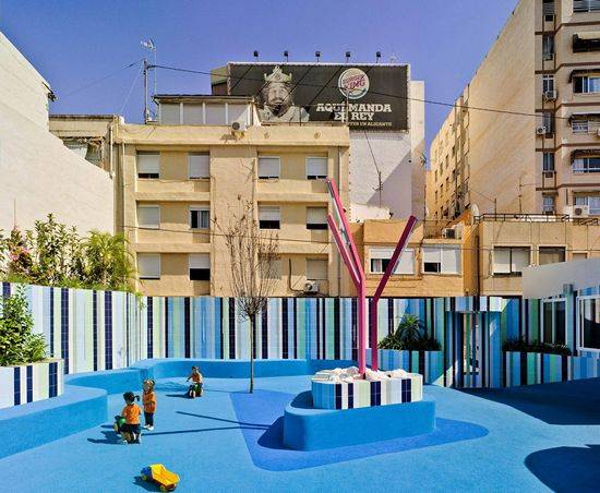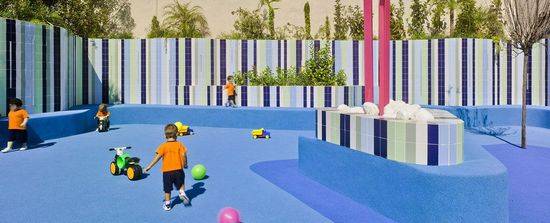 这个花园面对三种群体:孩童、成年人以及建筑和环境。根据孩童的尺寸设计了翻卷式的台阶,让空间能够包围着我们。在“影子花园”的四周都有这种不同的韵律感。人造灯光在夜晚也为场地产生了同样生动的韵律感。