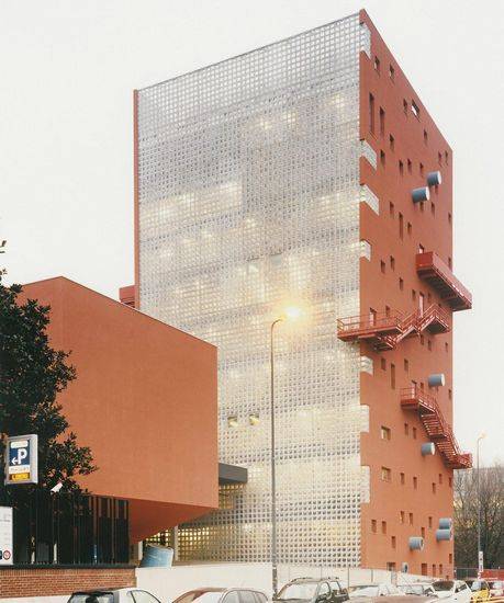 这三个建筑各自独立,而建筑空间又功能互补。最高的塔楼,存在感极强,内里以螺旋楼梯为中心,布置了档案室、咨询室和数字化图书馆,是一个收录IULM的时装、电影、社交和训练学习的事件与活动的场所。