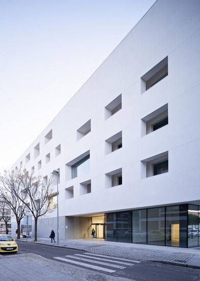 该项目是由Rafael de La-Hoz设计的,科尔多瓦大学教学中心大楼是建筑体量组合,和充盈着阳光的零重力般轻盈方体建筑。建筑用地形状为梯形,是西班牙科尔多瓦城市发展规划—国家铁路2总体规划的一部分。建筑看起来十分轻盈,立面上玻璃和混凝土的冲突对比强化了这种轻盈感。