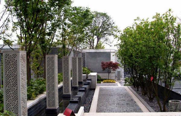 万科渝园采用中国的庄园建筑的元素,四米高的外墙、宽阔雕花铁艺大门、古老的桂花树、次第展开的台阶、充满手工痕迹的雕塑和清新高雅的修竹;同时非常强调重庆特色,比如借鉴了江津的柏林镇,黔江的小南海等,首先是砖石建筑,其次是将民国时期很多的精彩建筑元素也融入其中;另外渝园前庭、中院、后院、下沉花园以及屋顶天空露台,一应俱全;万科还借鉴重庆古老村落“一棵大树加一个小的广场”的模式特别设计了类似的小院落以供业主闲时休憩。