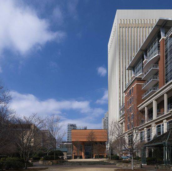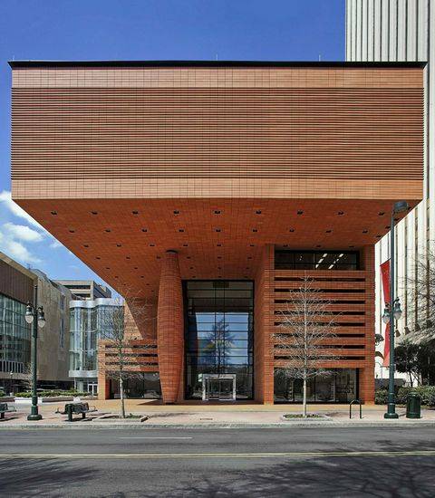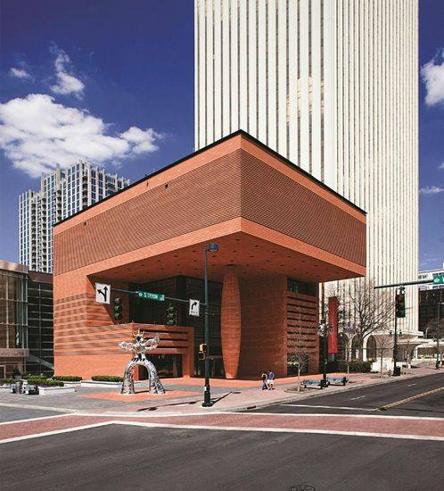 该项目是由Mario Botta设计的,博物馆位于Charlotte市中心,该城市在最近几年快速发展。这里设有重要的艺术家许多艺术作品。立方形的建筑内部是空心的,提供室外公共庭院。四层结构的特征是高耸的玻璃中庭,延伸通过博物馆的核心并扩散的自然光在建筑一个拱形天窗系统。