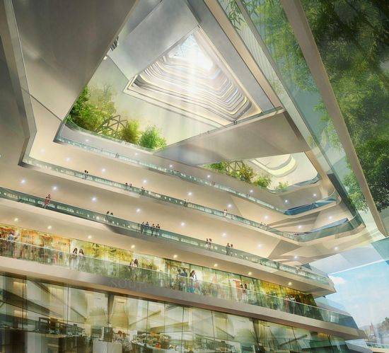 该摩天大楼方案是由SURE设计的,其结构设计提出了一个大胆的新命题。他们的提案,主题为“高度上无尽的城市”,在顶部楼层相互叠加的传统观念。相反,这种创新的设计采用两个街道的大小的坡道,风塔的外观,创建扩展的城市街景画垂直上升和线圈到伦敦的天际线。 建筑的斜坡相互交织,将通过一系列的桥梁和通道相互连接,使尽可能多的行人交通。沿着坡道的商店置于首层,自由定制自己的前立面。这增加了一个有活力的设计。塔的支撑结构为六根钢管,还设有管道和电气工程服务于大部分建筑。