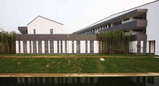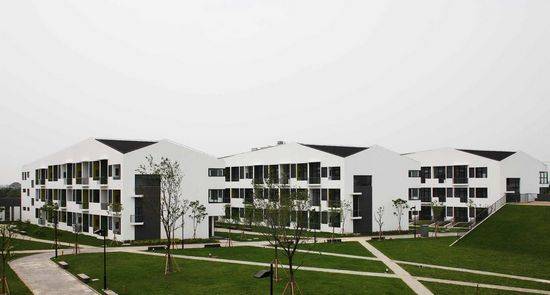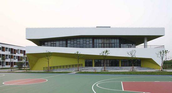 该学校坐落在新苏州高技术区的公园地带。它分为两部分,由公园连接。西部地区是900名学生和工作人员的寄宿设施。东部是教学设施,包括图书馆、体育馆和行政大楼。 这两部分都有一个中心空间连接到山丘公园:一个是三角形的走廊,另一个是直线空间。这些空间是由自然和机构负责。他们提供了一个能够体现和表达人类集体的制度空间。