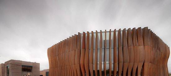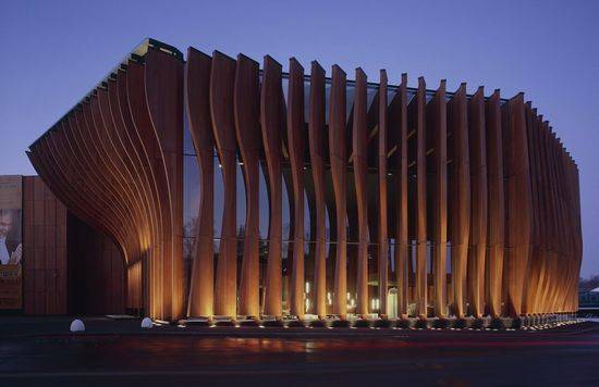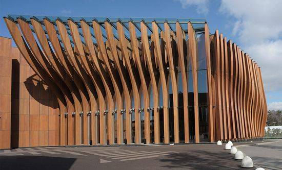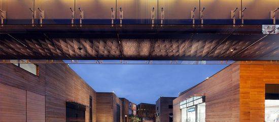豪华的村庄 豪华购物村综合设施位于600米长的站点,沿着Rublyovo-Uspenskoye公路,在Barvikha村和Zhukovka村之间。在两个细长的商铺之间是弯曲的步行街连接了5个广场。这条街的一端是温泉酒店另一端是剧院。一层和两层楼的商店建筑的地下停车场都有一个共同的基础,存储技术室。景观方案是由West 8设计团队创造的。 水星剧院 步行街通向剧院,在大厅的内部形成的剧院广场的延续。木片构成的深立面成波浪形,给出了构建动态同时保持稳定。该变换大厅可以以操作成四个模式:剧场、夜总会和舞台表演或演讲的舞台。大厅的变换由8个液压机构完成,可以降低或升高地板平台5米。
