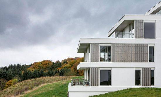 Juulsbjergparken是住宅设施,位于丹麦风景优美的郊区。该住宅由一个组合的两层排屋和公寓,放置在景观露台。所有住宅都朝南,在露台或庭院地形可欣赏下面的森林。 建筑的体系结构看起来简单而轻型。住宅设有不同类型的房屋。这提供了一个大的选择与不同的内部布局和房间数的性质。所有单位都有一个中央的起居室,可欣赏到独特的周边风景。屋顶上覆盖着绿色的植物–有机绿色屋顶材料结合的建筑形象为景观。该建筑具有很高的环保品质,其中最先进的节能建筑解决方案已经集成到设计中。
