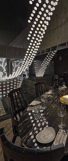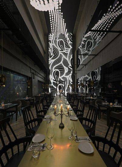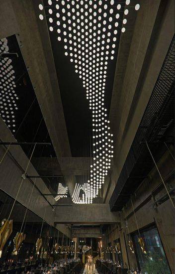 上海G九餐厅是由Atelier INDJ设计的,餐厅空间内设置了一个戏剧性的三重高度空间,这是中国大陆第一个高档百货公司的一部分。G九餐厅存在超越它的主要目的的餐饮和深入到一个领域的展览,场面和参与。 从项目开始Atelier I-N-D-J创始人Douglas-Jones领导项目的野心–“异乎寻常的分配空间就被利用而着称,早在已说服客户,这提供了一个机会,去创造一些颠覆先入为主”项目的所有元素都被仔细地考虑;从定制家具的一个超大规模的交互式灯安装于一个主要站点特定的艺术作品。