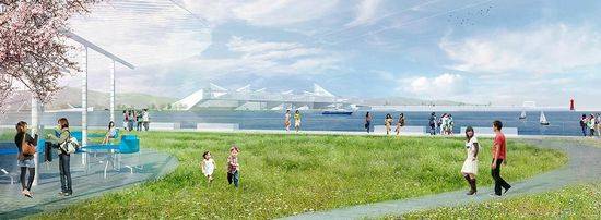 该项目是由Lorcan O’Herlihy Architects设计的,位于台湾金门港的金门岛,该方案利用了当地丰富的文化历史和自然环境,将公共公园和建筑功能结合在一起,可作为门户建筑为岛上的居民和他们的客人提供一个标志性的持久的基础设施。 该设施每日可容纳数千乘客,同时维护了岛上优美的海滨风景。该项目是通过折叠三角面板组合的网格组成,上面种以植被景观。该设计兼具景观和建筑的形式,将滨水公园和港口建筑结合在一起。为了加强金门与大海的关系,服务中心自地平面抬升,形成清晰的视线廊道。