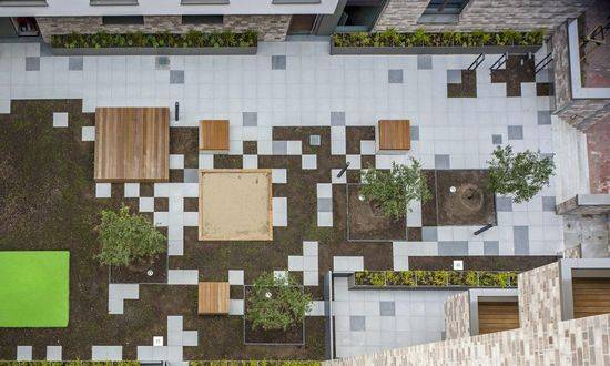 该项目是由KBNK设计的,“持续的城市结构”的建筑方法是认识到在旧与新的连接。两个新的建筑物形成一个巨大的城市特色的园林空间。他们共同的规模连锁公寓与周围的建筑。房屋的容积是四层和六层之间的结构在不同的部分措施,为居民间的互动奠定了基础。 与其类似的建筑结构,伟大的各种不同的公寓可容纳不同的需求。平面几何利用建筑物的面向绿色庭院。纵向流动的地板计划的概念,允许多种不同的公寓布局灵活,满足个人的情况。