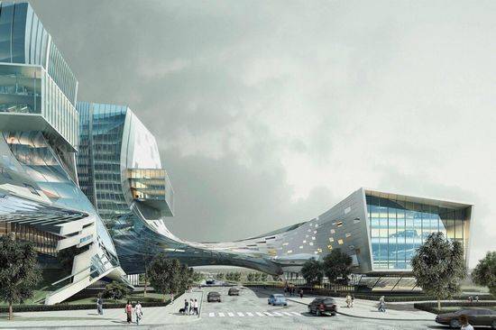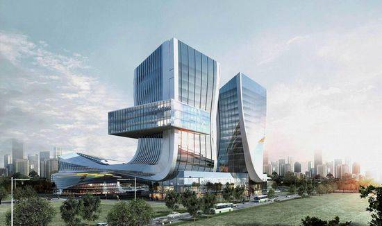 北京市望京是历来为人们进入城市的门户。它的名字从字面上翻译为“望向北京”。J. J. Pan和合作伙伴寻求更新北京汽车集团的新研发中心设计的标题。其灵感来自北京的特点,这标志着开放性,以及北京本身,这种混合使用的建筑是为了成为对望京和对公司有一个象征性的标志。 该研究与发展中心是蜿蜒的形式,位于由公共道路一分为二的两个独立的情节。在北端的很多情节将设有一五层结构,有展览空间、礼堂和购物空间,而南部是两幢18层的办公楼。这些建筑将通过桥的巷道连接,形成通往北京城的一个实在的门户。塔的位置最大限度地减少对邻近建筑物的阴影,以及复杂的墙壁的流体弧度允许阳光直射和室内的自然通风。这个曲率,基于中国书法,模糊了内部和外部空间之间的物理边界。建筑师指出,在本设计中“自然、人与汽车共存,为客户提供精神和理念,建立一个全面的企业形象”。