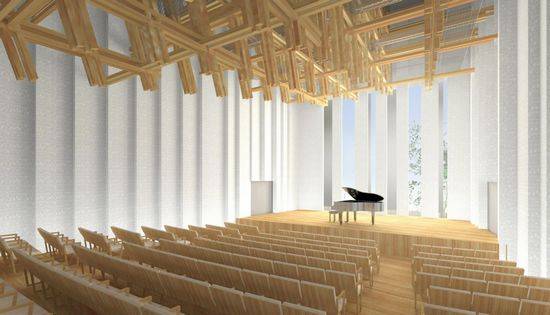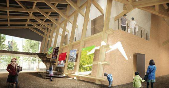 该项目是由Kengu Kuma & Associates 设计的,这是一个小型的文化综合设施,包括两个大厅和一个社区中心。建筑师说:“政府资助的文化中心往往是与其余的镇为典型的大容量”。因此,他们设计了“尽可能向城镇、Iiyama景观开放,这样一切都会显得和谐。”