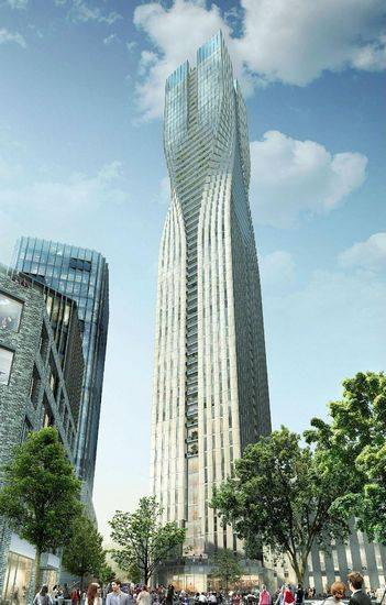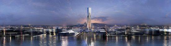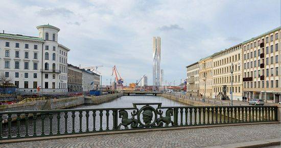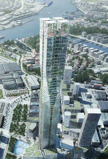 该项目是由SOM设计的,已被选为瑞典哥德堡一个新的住宅建筑,目前是瑞典最高的塔。该塔方案高230米,被称为“北极星”,四个连接柱在靠近顶部出扭转90度。 该方案为一个32000平方米的混合使用的总体规划,演示了摩天大楼如何可以集成到附近的结构,建设应是该地区的社会和建筑环境的一部分,而不是站在一个孤立的整体。