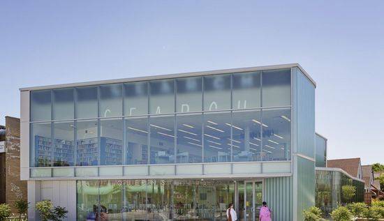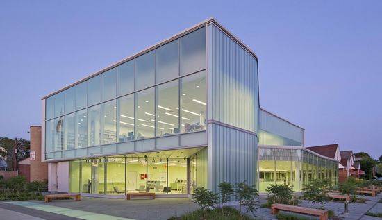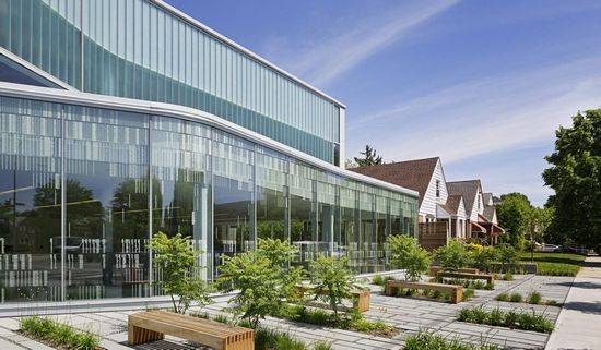 Glen Oaks图书馆是一个新的18,000平方英尺的LEED金牌认证的建筑,坐落在一个低规模的商业、机构区和一个居民区的交界处。该建筑扩大了以前的建筑领域,建筑三个楼层提供阅览室和收集室,并结合社区间和计算机数字技术。园景广场和外部的阅读花园为建筑外市民提供座位。