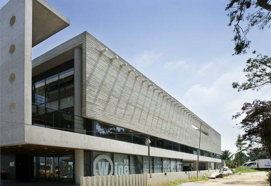 由于大楼将容纳一个专门从事将来自世界各地的进口葡萄酒提供给当地市场的公司,客户要求设计一个现代的“酒城”,设计将葡萄酒几个图像被叠加成多个层,位于实用形状的顶部,以便充分地体现葡萄酒的标志,插入到简单的、长方体混凝土体量中。