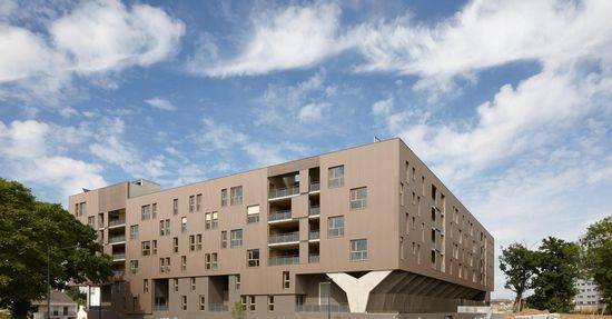 该项目位于雷恩的西南部,靠近城市的中心,在新的扩展,旨在开发现有森林延伸,展现自然风景区的性质。 该项目由规划师、景观建筑师和生物学家联合打造,所在区域名为“森林手提箱住所”,形成了集中建造的住房社区,建有很大的中央庭院。这里看上去有点封闭,为城市拓展新的住宅空间。这周围有很多老树,施工时,得到很好的保护。
