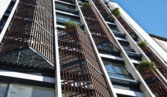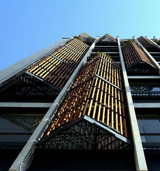 这是由Boozhgan Studio设计的阿瑟夫办公楼,坐落于山顶,建筑大量开窗,以饱览群山全景。建筑木质的百叶立面主要控制南面强烈的光线,并控制视线。百叶立面有着不同的形状,从而创造一个充满活力的建筑形象。设计团队为每个楼层提供最好的视线,以及控制光线照入。建筑共10层,其中六层为办公空间,首层为商业用途,另外三层用作停车。整个建筑均使用了花岗岩,形成连贯统一的感觉。