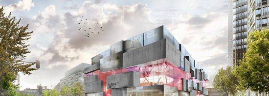 该项目是由J.Mayer H.设计的,“Volt柏林”是一个新的“购物和城市体验”中心,位于柏林的亚历山大广场附近。获奖方案提供了各种体验的设施,包括多品牌购物、室内跳伞和活动空间,以及一个7500平方米的酒店,在一个单一的立方复杂的组织建立了一个非均匀网格。
