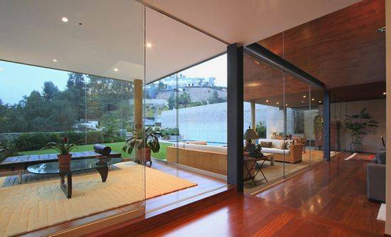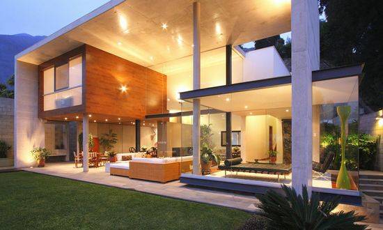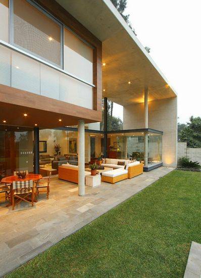 这是由Domenack Arquitectos设计的S住宅。该项目主要解决三个问题:满足家庭居住的功能需求,结合严峻的倾斜地形设计而不选用复杂昂贵的结构,与高尔夫球场保持视线联系。 住宅建于高于街道水平3米之上的一块现状自然平地。因此街道水平高度仅仅布置了停车库和服务区,而其他主要功能区布置在自然平地上。建筑一共3层,结合岩石地形而建设。建筑首层布置了主花园、游泳车和公共活动区,而二三层则布置私人区域。