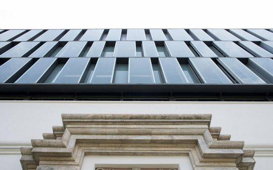 延伸垂直建设是一项艰巨的任务,尤其是将现有部分与外延部分分离的时候。该战略包括集成的建设创造了一个新的单位不同的“寿命”:该项目源于所用以前的建筑师提出,涉及建筑没有模仿它的设计策略分析,保持原始版本的突出。 原来的建筑,是一个非常庞大的体积,两层楼高但给出了一个巨大的水平的错觉。1999年它由建筑师Pier Baracco改造,创造了第二部分的水平,并退出了金属结构作为一个未来的纵向延伸支撑点。2007年项目执行第三和第四层次的延伸,操作反向规模变动:不是增加它的纪念意义,而是作为原始建筑师那样,规模下降(与第三方的水平上下两层),以免与原有立面突出竞争。