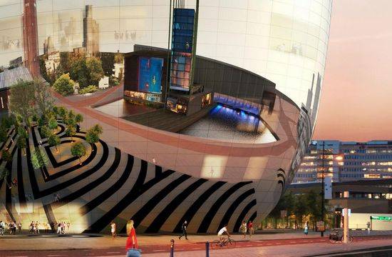 该项目是由MVRDV设计的,博物馆公园新公共艺术馆位于鹿特丹。外立面是高度反射的玻璃幕墙,圆柱体的外型,里面陈列了许多鹿特丹珍贵的艺术收藏品以及提供私人收藏家商业内部存储。它的目的是使国际博物馆运作,绕组游客公共路线,过去的储藏室和恢复工作坊,屋顶的展览空间,雕塑花园和餐厅。 收藏馆是对公众开放的艺术馆。公共路线弯弯曲曲穿过建筑,在一楼的大厅有一个咖啡馆然后是展览空间,雕塑花园和餐厅在屋顶层。屋顶设有一家餐厅,园林雕塑和展览空间提供了广泛的鹿特丹景观。