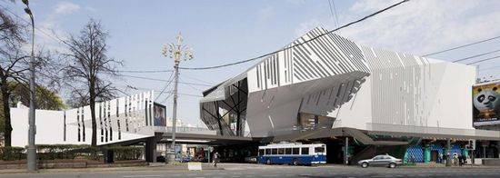 该项目是由俄罗斯设计师Arseniy Borisenko和Peter Zaytsev合作设计的莫斯科pushkinsky影院,设计师将历史建筑Pushkinsky电影院用金属结构重新改造,恢复电影院的历史标志性。设计师旨在保持影院原有的体量,但在形式和材料上将历史与现代结合起来。这个俄罗斯剧院于1961年开业,是战后莫斯科第一批现代建筑,可以容纳3000名观众。莫斯科俄罗斯电影节每两年在这里举行一次,是俄罗斯首屈一指的电影遗址。这个方案是对“电影眼”(kino-eye前苏联电影理论家维尔托夫的电影理论)的重新诠释。改造后,建筑内的光线从外墙的细长开口透出,这一条条飞舞的光线,好似昆虫的舞蹈。该建筑将会继续作为莫斯科和谐的城市景观的一部分,表皮材料为白色聚合物Corian,并镶嵌钢化防盗玻璃,柱子为简洁活泼的树形。现状的一个不再繁荣的赌场将予以保留,还会增加一个普希金广场,来重建这个步入数字化时代的电影院。