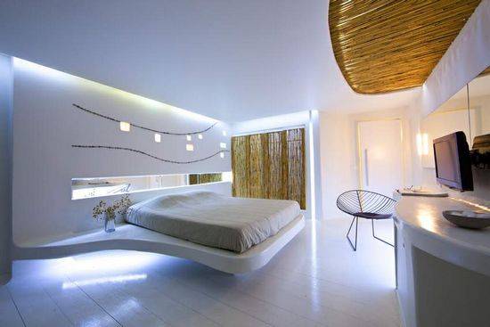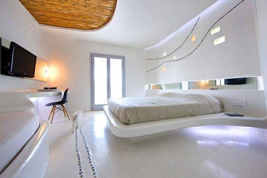 Andronikos Hotel 酒店位于一座俯瞰Mykonos Town 镇的小山顶端,设有室外游泳池和健康中心。酒店设57间套间,室内装饰独特,巧妙利用了鹅卵石、不规则线条,还融入了基克拉迪群岛的特色。事务所从上世纪90年代起就着手对该酒店的翻新工作,主要遵循了纯净、简单、流畅和出其不意的理念。酒店套间内除了上述独特的装饰特色外,还有形状不规则的家具和起伏不平的墙面,用一种现代的手法体现了该小岛的精髓。