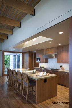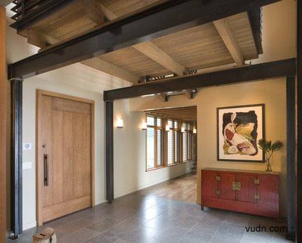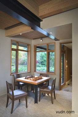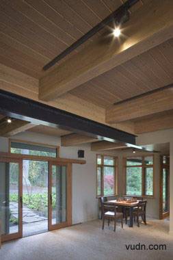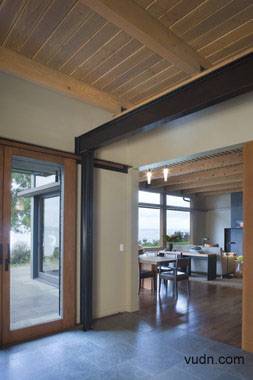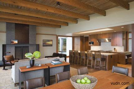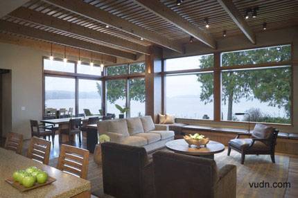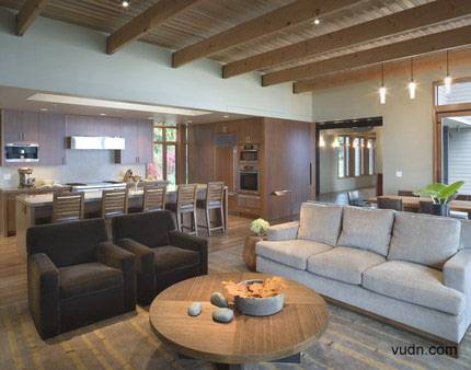 设计通过家具的材质整合了周围的装饰,并通过使用超大门和大窗户来连接外部和内部。周围的景观设计则从成熟的森林与草甸入手,并且自然地过度成为了房子的背景。