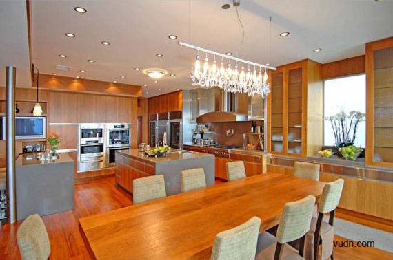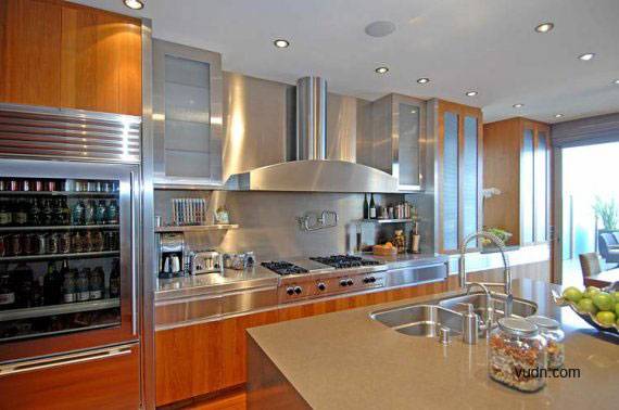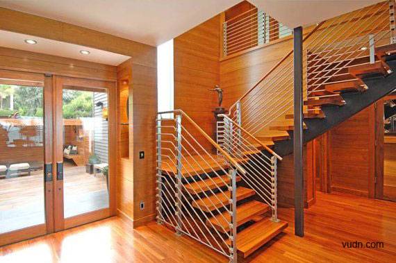 别墅的空间设计体现了一种美国的现代主义风格,主要以金属和木质装饰为主。就在金属与木质相互搭配的同时体现出了现代主义风格中的那一点点怀旧的思想,也许这就是该别墅的设计师所要表达的。