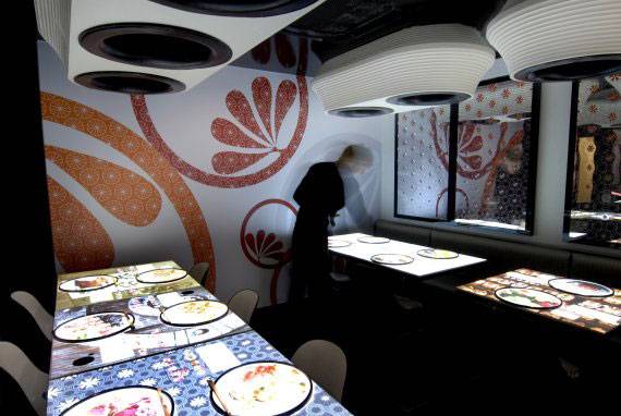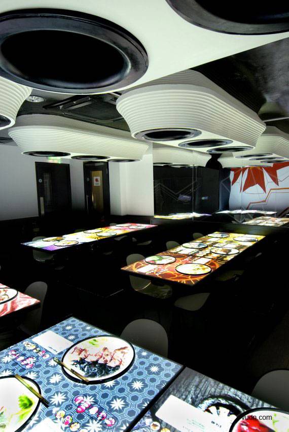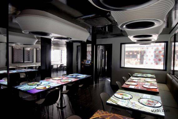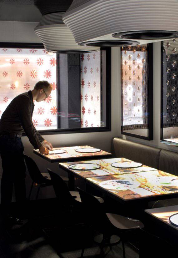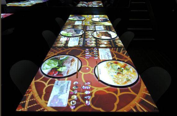 餐厅的独特功能是将菜单投影到桌面上。让食客与食品和饮料互动,改变氛围的电子餐布和可供选择的电子列表,可以玩游戏,甚至可以查询地方的信息和服务,如预约出租车等。