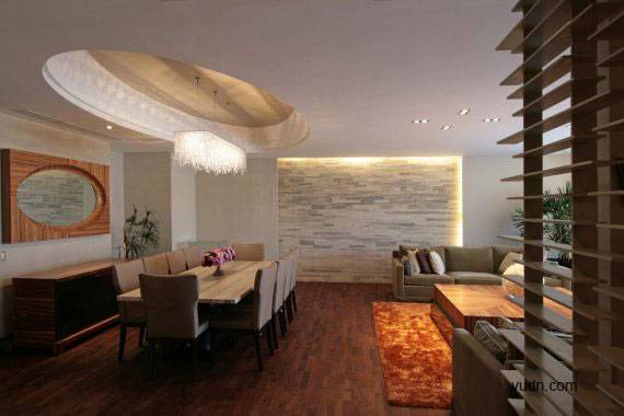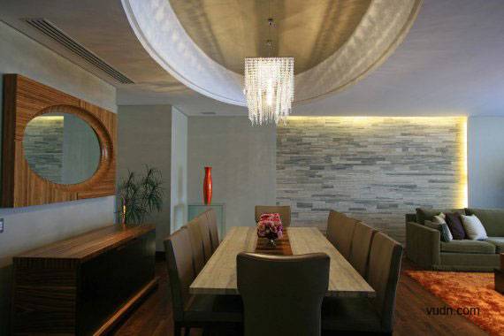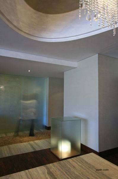 室内多样性是用来实现原始材料的组合:皮革,玻璃,木材,矿和金属产品的形式和色彩产生了一种特别和谐的的气氛。另一方面, Travertino大理石板和trapestry覆盖的墙壁,强调特定领域之间层次的一个重要要素。
