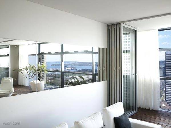 位于澳大利亚悉尼的公寓室内设计。公寓有3间卧室, 2间浴室,宽敞的客厅和超宽的生活空间,开放明亮的一个长落地窗俯看城市和海港,戏剧性的厨房和浴室设计,超常的反光玻璃材质的运用使室内更加明亮,国际标准的公寓设计打造舒适的生活。