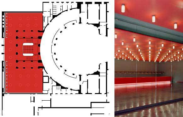 Stephan Braunfels为komische柏林歌剧院重新设计的酒店大堂和门口的大厅领域。