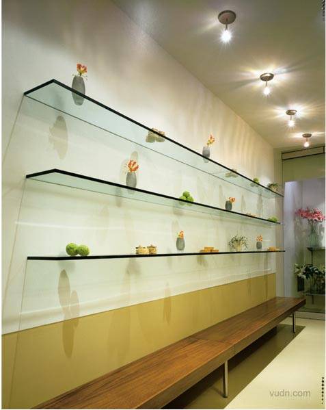 多伦多的花卉和甜品店Dufflet-quince室内设计。美丽的,长型的和狭窄的空间,由一个精简的橱窗, 摆放蛋糕和甜点。广泛而连续地墙面上的玻璃曲线向上,形成一个流畅的空间摆放花卉。
