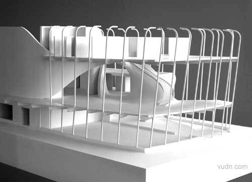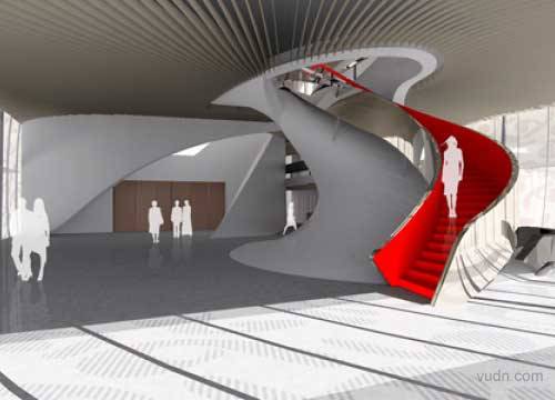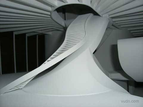 Unstudio设计的剧场室内。建筑物组成,横向定向螺旋系统,其两端是相互交织,对各方案部分创建缓冲区之间的职能以及实现不同空间的需要,螺旋组织构成的过渡地带,让演员通过的道路,起到连接内部的,私人的职能。在中央的概念就是大会议室,可以灵活运用作为工作场所,音乐会室及音乐剧场。