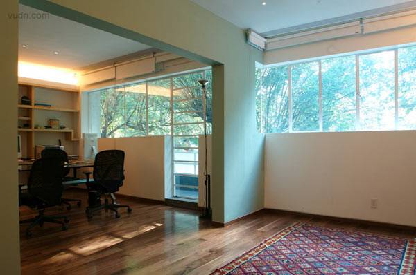 墨西哥Luis Barragan别墅室内翻新设计。新的设计保留了原有的地面层及一层是绿色而二楼淡灰色。保留了原尺寸的天窗照亮楼梯。新的设计保持简单,洁净和原有空间的结构,通过加强概念性的主张划分空间。加强了水电卫生设施,通风系统及灯光,自动化整体解决方案设计。