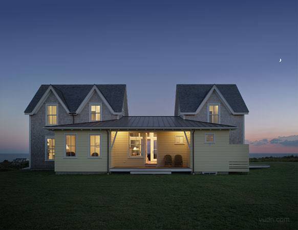 Estes Twombly设计的英格兰McKeough房屋。通过中间的阳台和客厅连接左右两边一样的建筑。整个既有传统的英格兰风格又现代轻松活泼。