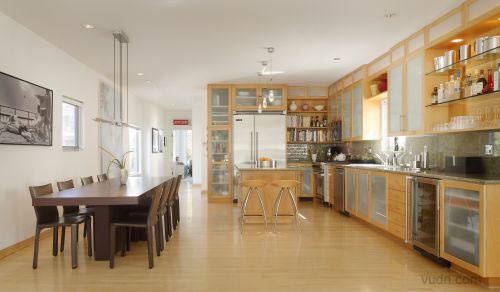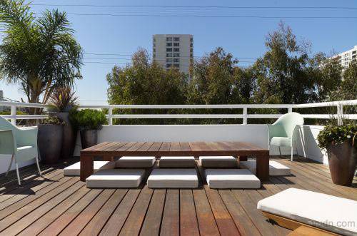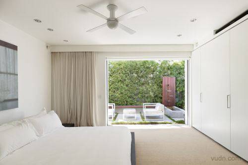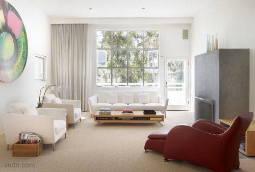 加利福尼亚州的海滩别墅的室内设计。分为三层。一层是个开放的空间,包括客厅,厨房与用餐区。还有一个大的壁炉以及阳台。二楼为客房浴室以及主人套房,其中还连着一个户外花园。三楼整个就是书房,工作间和一个屋顶阳台。整个设计既有城市的便利舒适,又有度假的休闲惬意。