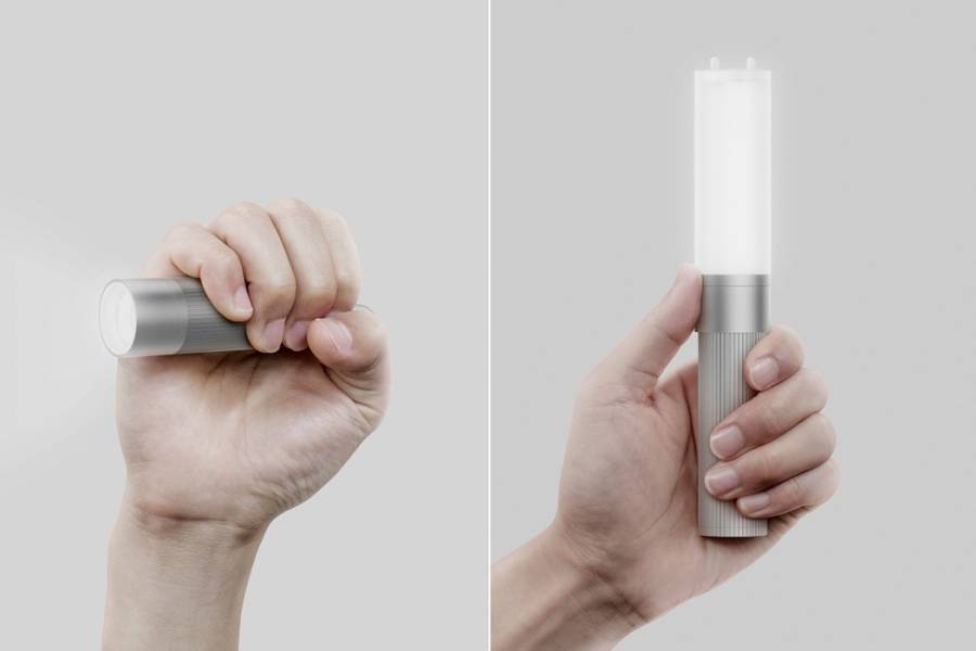 这款模仿无印良品风格的手电筒继承了品牌的简约外观和低调功能的特点,一拉一伸,可当做普通手电筒或者漫射台灯使用,小巧灵活,方便携带。