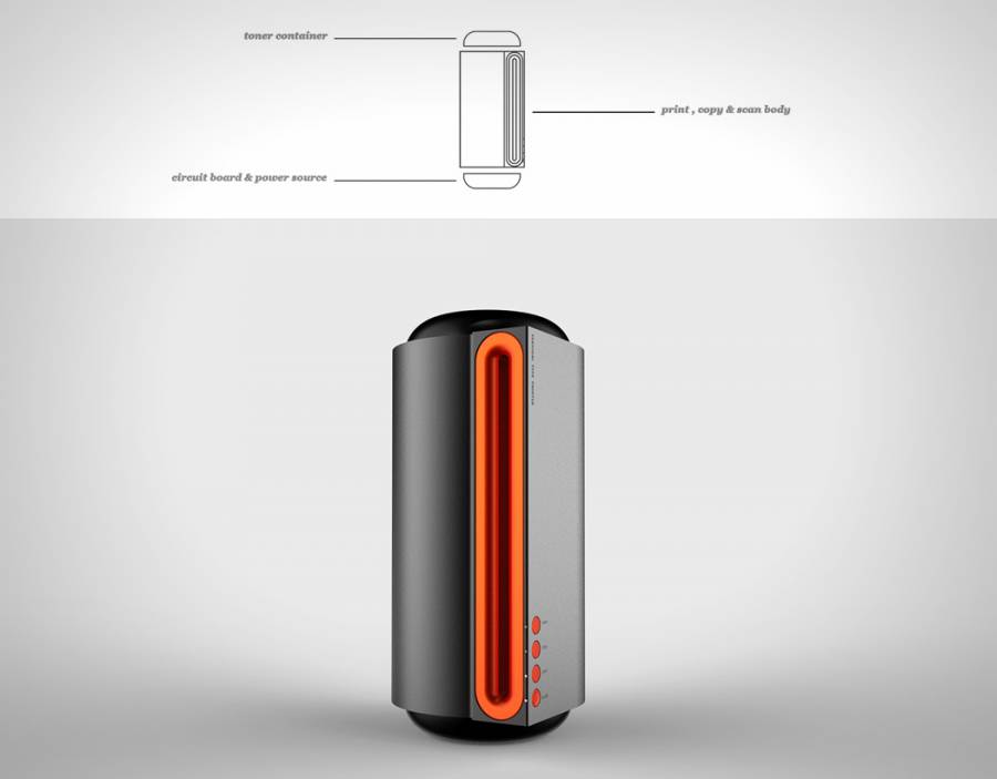 通常的打印机占着较多的空间。设计师Martin Jiang设计的一款竖起来的打印机,身材变得更加苗条,而最大的改进则是出纸方式,从原来的平躺变成了侧面竖出,这样的改进可以减少打印机的空间占用。