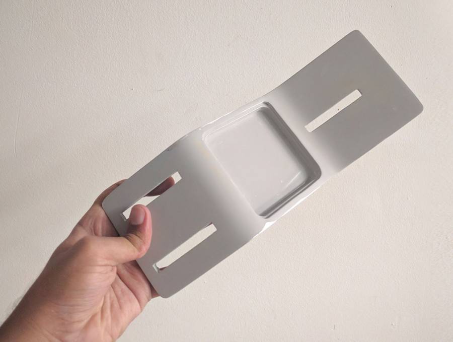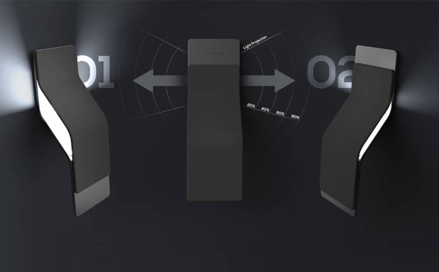Sushant Vohra 设计的一款壁灯ELVIS,它并没有传统意义上的开关设计,而是灯的本身就是开关。它由两片弯曲的面板重叠而成,开灯时,将外层面板轻轻向上推动即可,中间镂空的平行四边形会为你提供光亮。如此设计,巧妙地将调节光强融入其中,推动的距离不同,光照强弱便有区分。最亮一档可伴你阅读,最弱一档则可用作小夜灯。外层面板选用柔软的毛绒材料,推动时十分舒适。