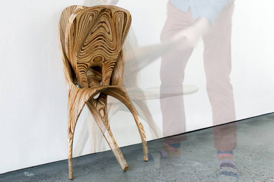 设计师Ammar Kalo设计的一款三条腿的木纹座椅。日常生活中的座椅普遍都是四腿构成,其实三腿座椅依然稳定,并且减少了木料的浪费。它由两部分简单的构建组成,平时不使用时,可以把它们折叠起来,以节省空间。试想如果把它们差分开来,每一部分都可作为一个雕塑品存在。